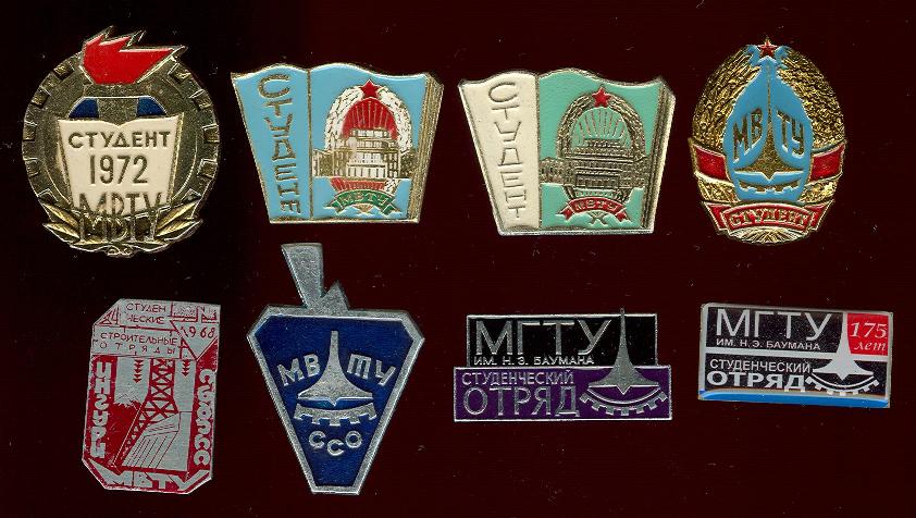 Да, таких значков известно довольно много. Самый ранний датированый - 1968 года, самый поздний - 2005.Alexey писал(а) :Попадались ли Вам значки студенческих строительных отрядов с определённой принадлежностью к МВТУ Баумана.