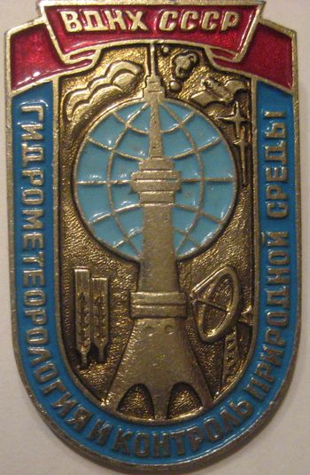 ВДНХ СССР, спутник и Сатурн присутствуют на знаке.