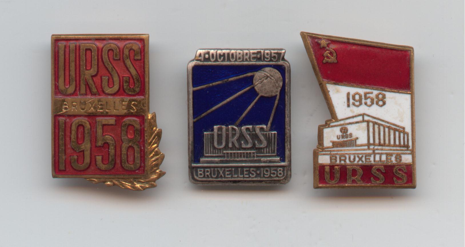 Значок по сюжету и стилю очень схожий со значком выставки в Париже в 1961 году, может быть тоже выставочный, или просто символика? Для наглядности покажу их рядом.