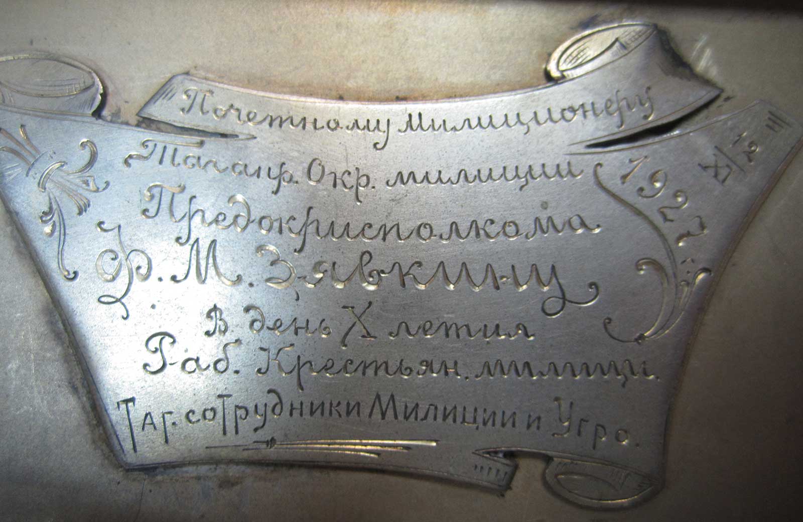 Оружие вручено т.Куксу И.М. материал-серебро.
