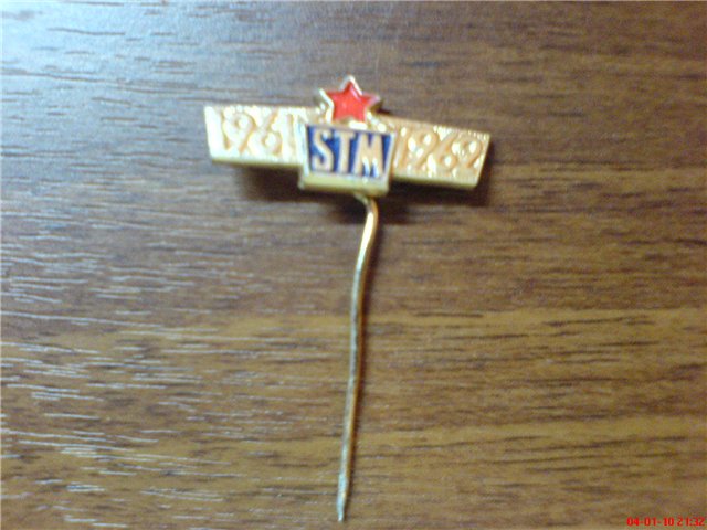 Еще подборка знаков STM, включая пару разновидностей показанного ранее знака (размером 27 х 12 мм.), с креплением на заколке и игле.