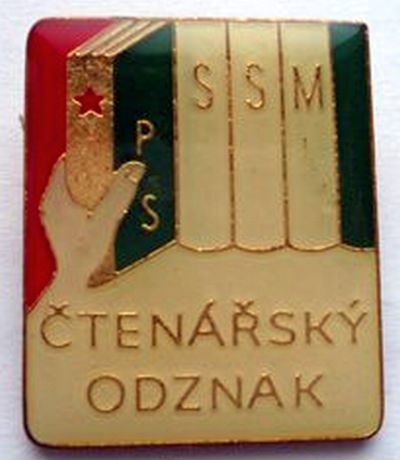Его название: "čtenářský odznak", т.е. читательский. Есть три ступени, обозначаемые римскими цифрами. I и II ступень имеют по два цветовых варианта; итого таких знаков в идеале должно быть пять. :hi: