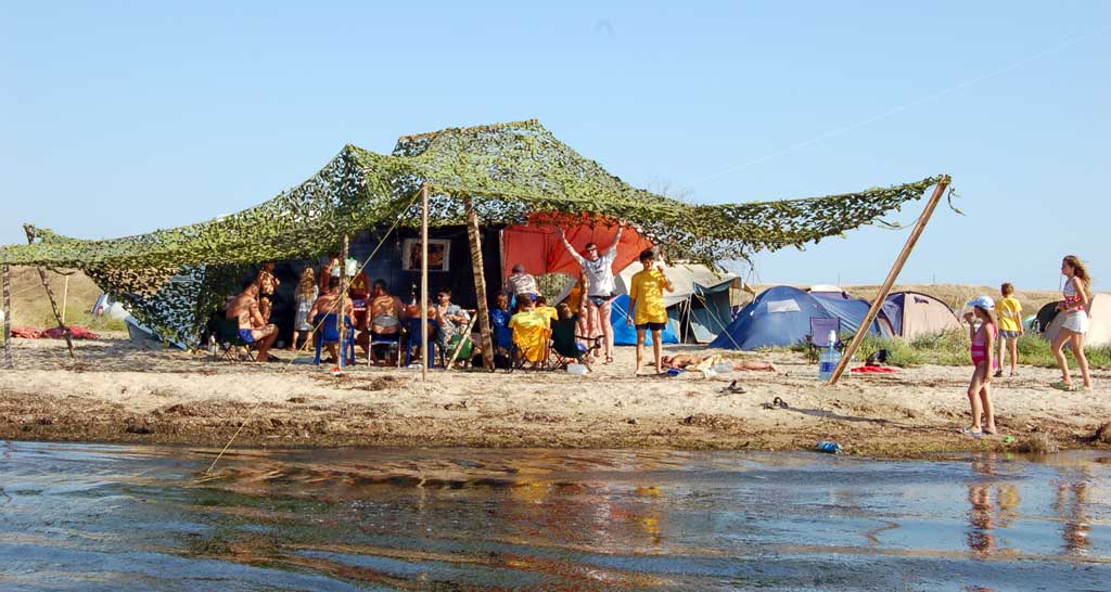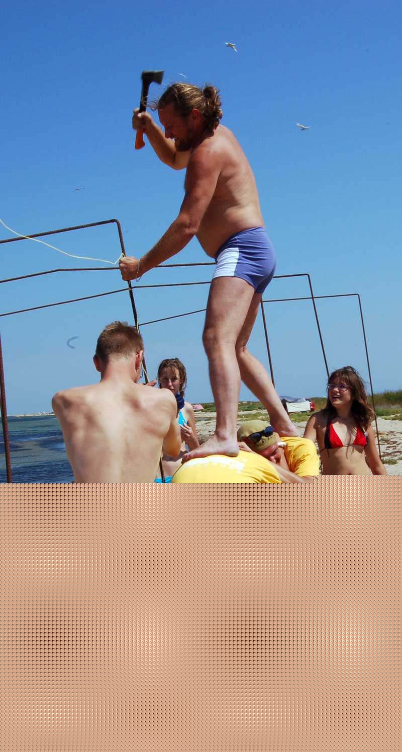 Пока группа подводников вела достойный поединок с черноморской волной, всё новые и новые участники экспедиции въезжали на территорию экспедиции. Разгружалось оборудование и продолжалось благоустройство самого лагеря. Порой, в крайне фантастических условиях фиксировалась спальные места и пункт приёма пищи, но... лагерь постепенно принимал традиционный дизайн... :yahoo: