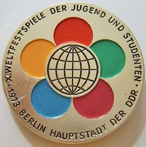Знак Союза свободной немецкой молодежи (FDJ), посвященный X Всемирному фестивалю молодежи и студентов в Берлине 1973 г.