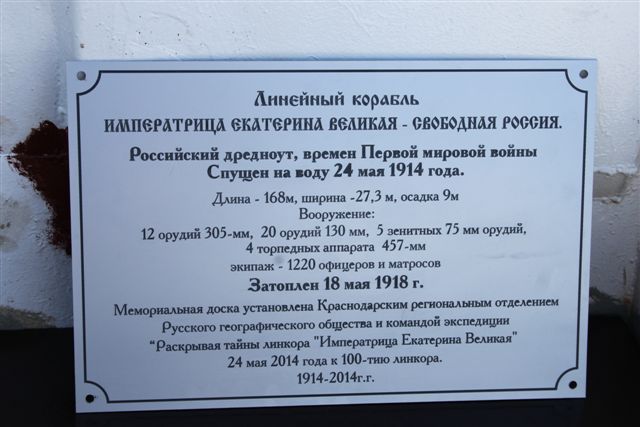 Мемориальная доска, установленная водолазами на линкоре «Императрица Екатерина Великая»
