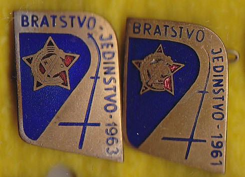 Но, справедливости ради - если уж какой знак и действительно похож на показанный на предыдущей странице знак в честь тридцатилетия (1942 - 1972) Югославского анти-фашистского союза, так вот этот (размер 24 х 25 мм):