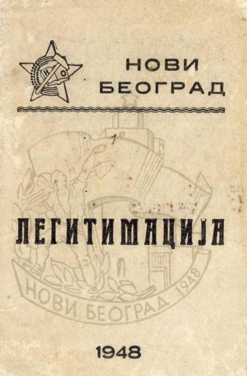 Он же (только его сербский вариант) на обложке документа участника строительства, датированного 1948 г.