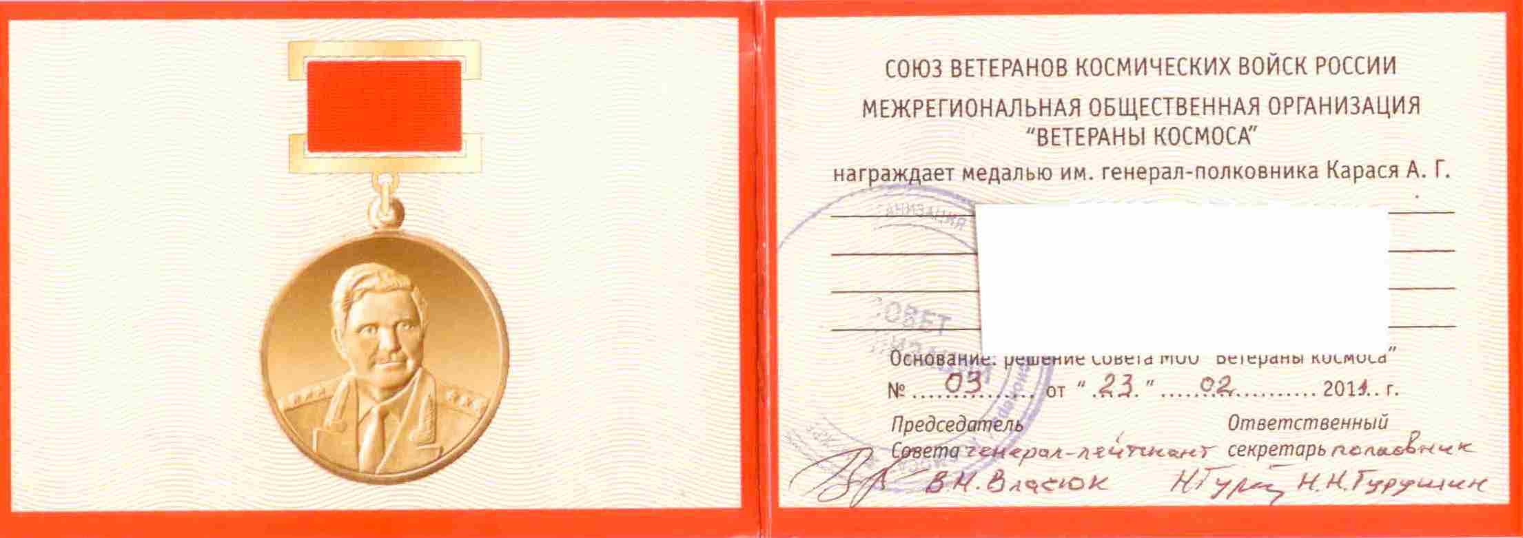 • средняя эмблема Космических войск — принадлежность к Космическим войскам;