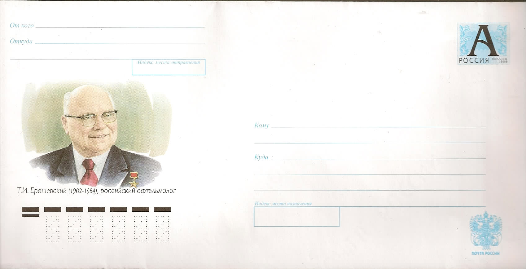 Выдающийся представитель отечественной офтальмологии, основатель знаменитой самарской офтальмологической школы Тихон Иванович Ерошевский родился в 1902 году. Научная деятельность Тихона Ивановича Ерошевского началась сразу после окончания университета: его назначают директором областного офтальмологического института в Саратове. В 1937 году молодой ученый получает степень кандидата медицинских наук и звание приват-доцента. В 1939 году Ерошевского направляют на работу в Сталинград, где он организует и возглавляет кафедру глазных болезней. Следующей значительной вехой в биографии становится защита докторской диссертации, посвященной иннервации роговичного трансплантанта и издание первой монографии «Пересадка роговицы». Научные интересы Ерошевского как в этот период, так и в последующий, касались различных проблем: кератопластика, врожденная и первичная глаукома, глазной травматизм, воспалительные заболевания органов зрения, миопия, отслойка сетчатки, катаракта, имплантации искусственного хрусталика. В 1949 году Ерошевский становится директором Куйбышевского медицинского института, а в 1963 году открывает областную глазную клиническую больницу с кафедрой глазных болезней - первый в Советском Союзе специализированный офтальмологический комплекс, включающий стационар на 300 коек различного профиля (в том числе детское отделение, амбулаторию, лаборатории электронной микроскопии и контактной коррекции). Тихон Иванович Ерошевский - участник Великой Отечественной войны. Его имя носит Самарская клиническая офтальмологическая больница и улица в Самаре. Скончался в июле 1984 г.