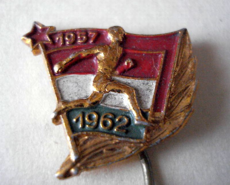 Это знак, посвященный спортивным соревнованиям, приуроченным к 5-летней годовщине (1957 - 1962) образования Венгерского коммунистического союза молодежи (KISZ).