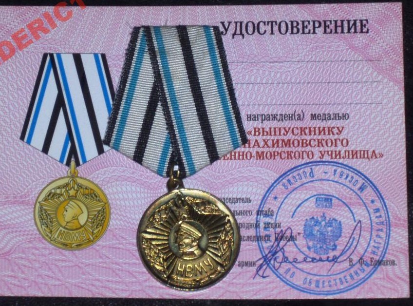 При награждении вместе с юбилейной медалью имени П.С.Нахимова вручается удостоверение установленного образца.
