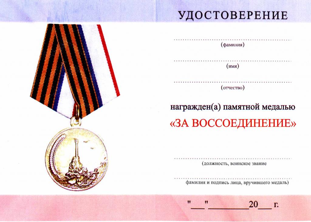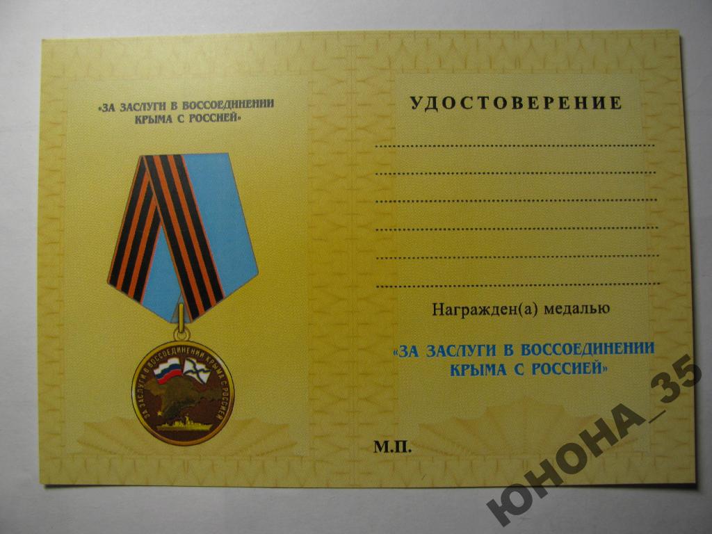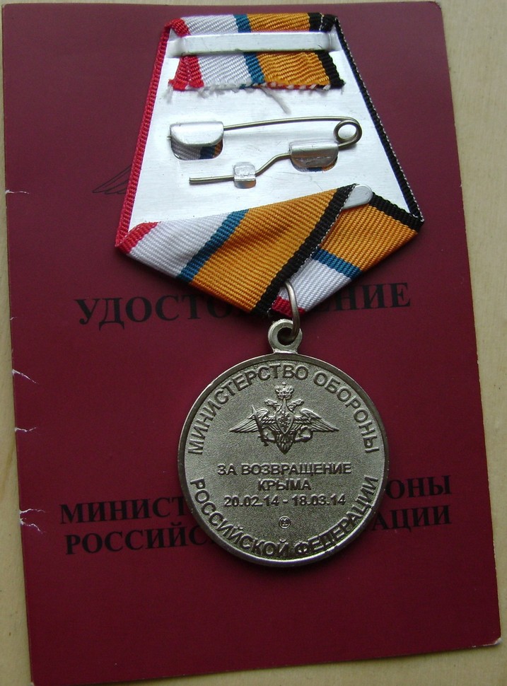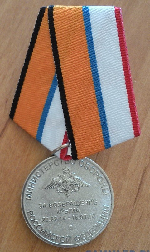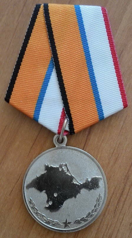 Официальная награда за Крымскую операцию Таманского отдела ККВ. В Таманском отделе Кубанского казачьего войска учредили свою собственную медаль «За Крым 2014». За образец взята памятная медаль к годовщине Крымской войны. I-я степень медали носится на Владимирской ленте, а II-я на Георгиевской. В первой партии медалей выпущено по 150 штук, всего триста медалей.