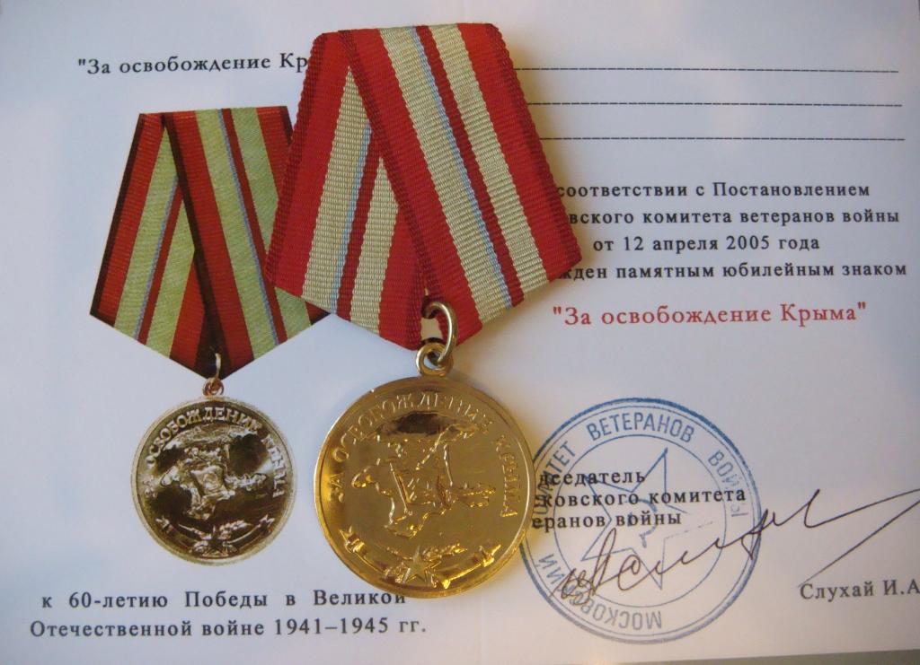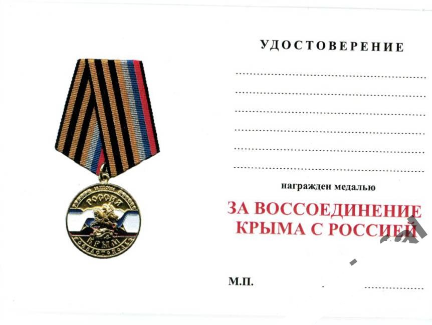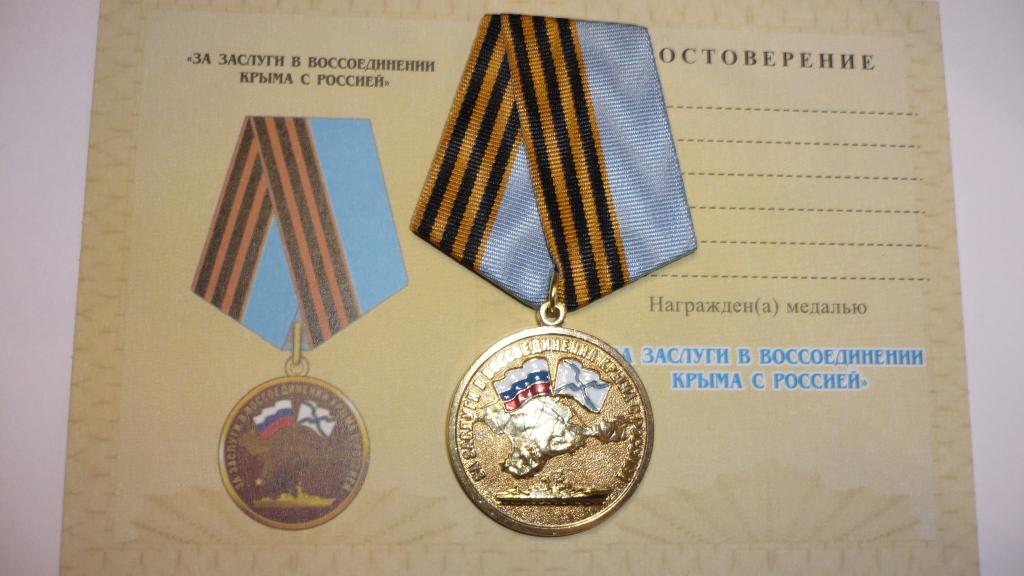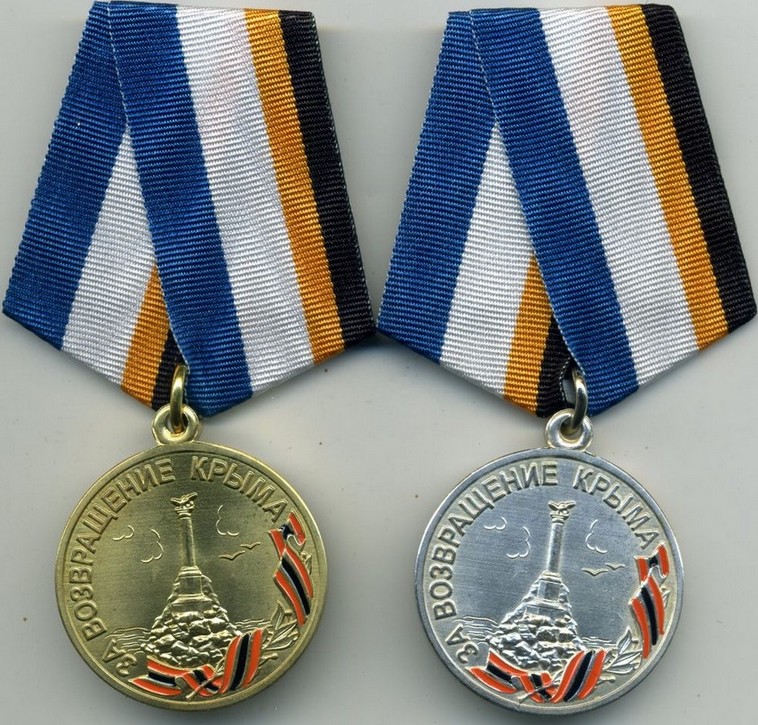 Моя текущая подборка, посвященная присоединению Крыма. Юбилейные крымские, "Уходили мы из Крыма" сюда не включил как несоответсвующие теме. Варианты цветовых исполнений медалей, креста с мечами или без, чеканки и тем более ленточек решил не собирать. Два последних знака думал, включать или нет... Все-таки включил, хотя они и не совсем соответствуют критериям.