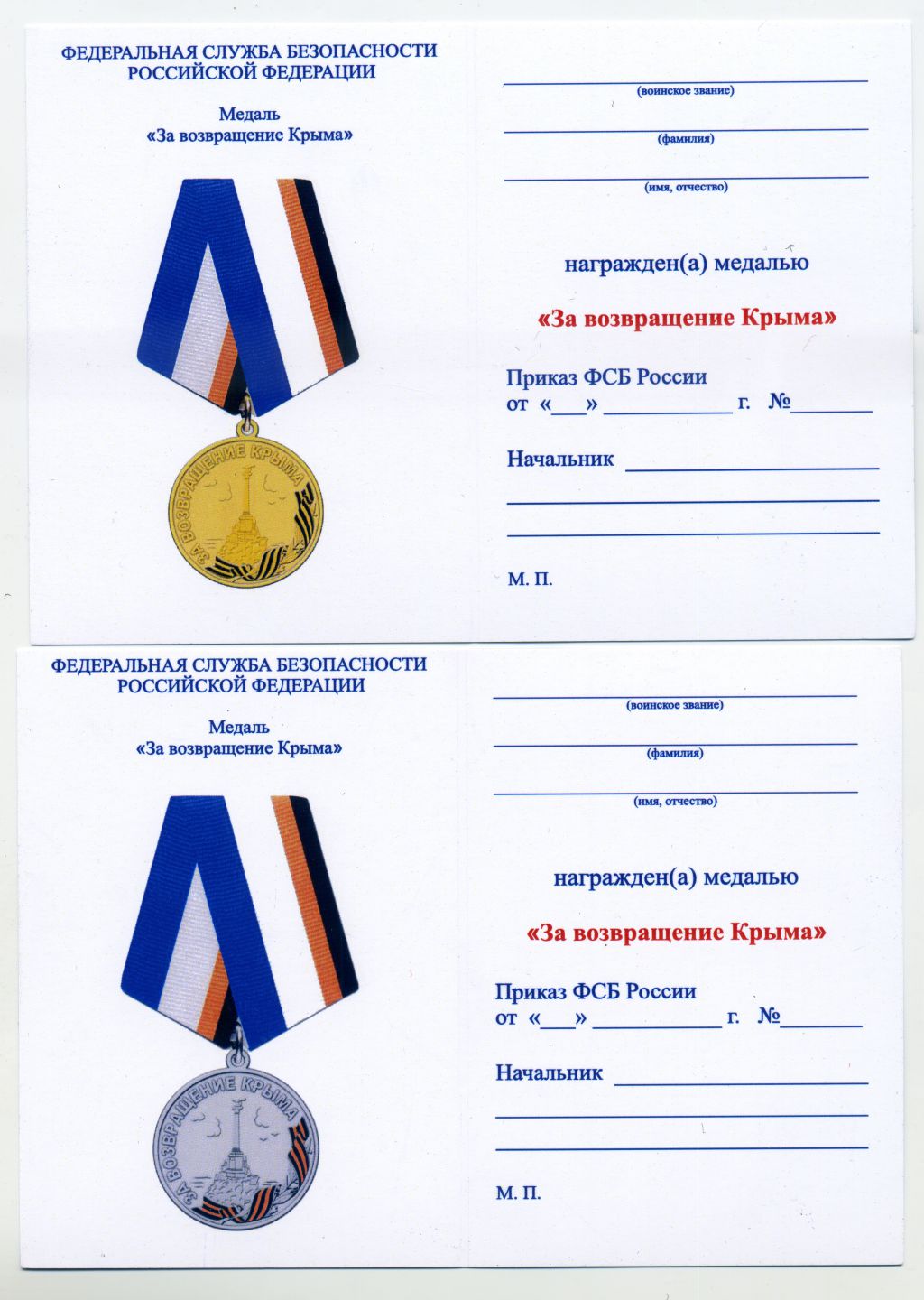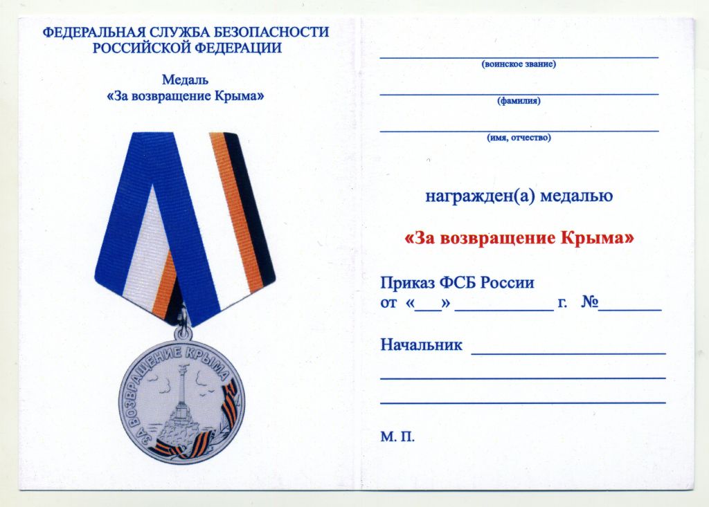 За Крым \ ФСБ \ Учреждена приказом Директора ФСБ В 2014 году (очень маленький тираж)