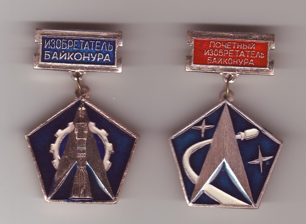 Почетный изобретатель Байконура ("Изобретатель Байконура" уже был на форуме и показан в связке). Знаки выдавались с удостеверением приказом начальника космодрома. Знаком "Почетный..." награждено всего шесть человек и является довольно редким.