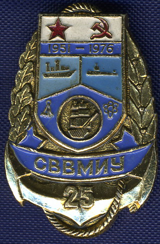 Есть еще и такой знак. Хотя отношение он к СВВМИУ имеет весьма отдаленное. Все же училище существовало до 1992 года. Знак как я понимаю выпущен ВМСУ.