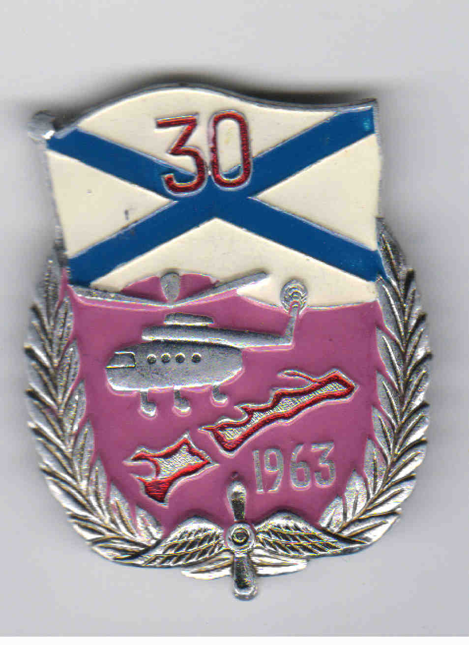 Этот знак был выпущен в первой половине 70-х гг. прошлого века. По моим сведениям, полученным в то время, это знак был выпущен по случаю 30-летия создания главной ракетно–минно-технической базы Северного флота, В/Ч 63976 "Окольная", в Североморске. Но полной уверенности у меня в этом нет, так как это был рассказ мичмана В. М. Седых (ныне покойного), который служил в части, расположенной недалеко от "Окольной", но больше мне не доводилось встречать информацию об этом знаке. Мог ли В. М. Седых ошибиться? Думаю, что мог, так как в Североморске были ещё и иные службы, связанные с ракетно-минным вооружением. 17 мая 1984 г. на базе "Окольная" произошёл взрыв настолько сильный, что жители Североморска думали о начале 3-й Мировой войны, так как над городом поднялся "гриб" очень похожий на "гриб" от взрыва ядерного заряда (см. фото) :hi: