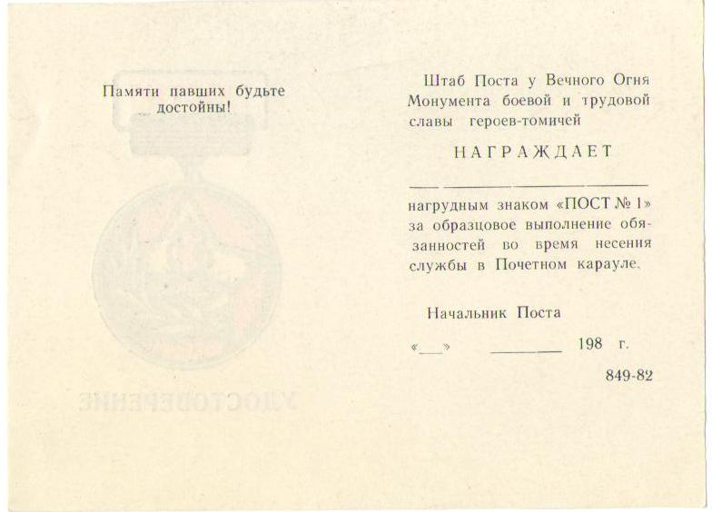 Ответ здесь прост - один и тот же заказчик - областной военкомат....Busan писал(а) :А вот, похоже, предшественник Вашего знака. Свой значок приобрёл году в 1987-89, или 90-м, точно не помню...Sergey_K писал(а) : Пост №1 в Иркутске...