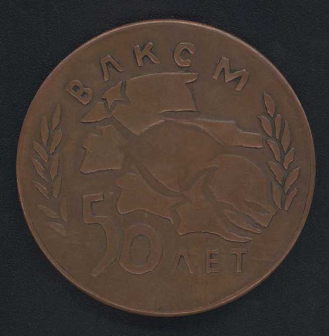 настольная медаль "50 лет комсомольской организации Минского станкостроительного завода им. Октябрьской революции" 1974 г. т/м (литье), односторонняя