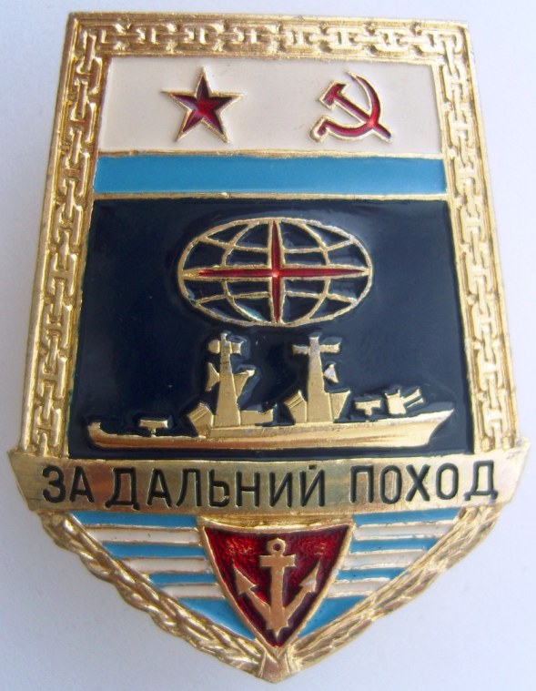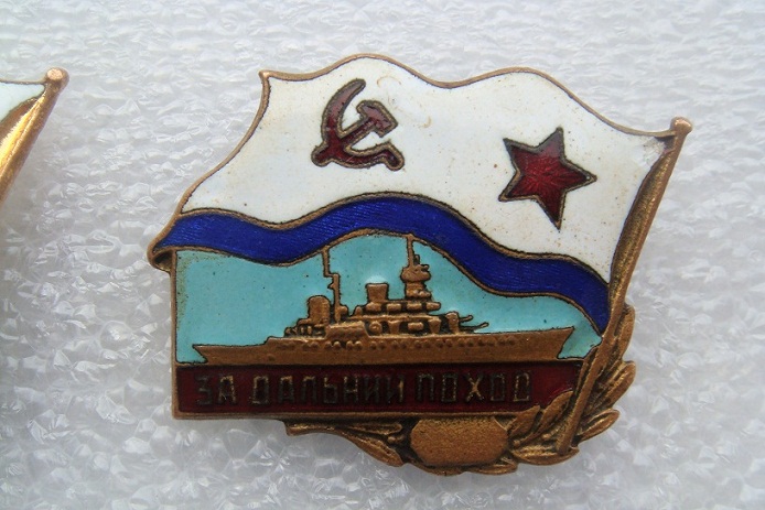 В соответствии с этим документами,жетоном "За дальний поход" награждались военнослужащих ВМФ,участвующих в дальних заграничных походах на боевых кораблях флотов,а именно-