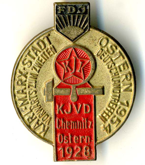 С помощью Лингво у меня получился "Лучший молодой рабочий". На реверсе земля или район Лейпциг.Eugene писал(а) :Такого вреде не увидел.