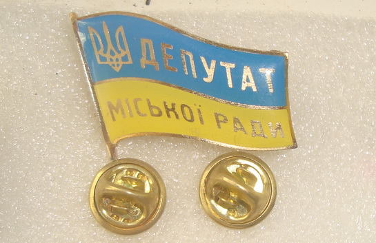 "...Таких примеров нежелания копировать (или просто сохранить) советское, много. Первый, который приходит в память -это отказ от формы значка народного депутата Украины в виде флажка. 29 июня 1992 г. Президиум Верховной Рады Украины отменил своим постановлением депутатский знак, выполненный в стилизованный развивающийся флаг, и ввел новый - в форме круга. Просуществовал такой знак совсем недолго, так как большинство депутатов просто отказались его носить, а между собой стали называть его «шайбой». В итоге 3 марта 1993 г. был утвержден новый «старый» знак в форме все того же привычного флажка..." ( Из статьи Н. Омельченко "МАССОВЫЕ НАГРАЖДЕНИЯ В УКРАИНЕ. ВЗГЛЯД СО СТОРОНЫ")