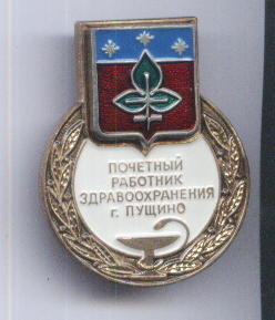 О приведенном знаке "ПОЧЕТНЫЙ РАБОТНИК ЗДРАВООХРАНЕНИЯ г.ПУЩИНО (с гербом Пущино)