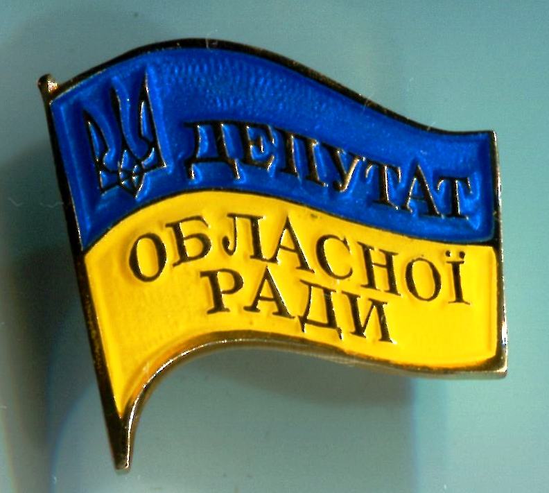 Уважаемые коллеги!Есть в коллекции несколько знаков депутатов областных рад Украины.Но индефицирован только один знак,т.к. к сожалению в отличие от большинства субьектов России на знаках не указываются названия областей.Буду благодарен,если Вы поможете определить их территориальную принадлежность.Итак №1 Днепропетровская область.