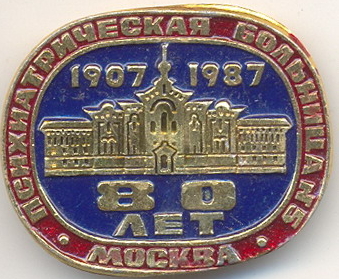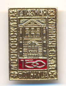 Недавно получил в подарок очень наплохо сделанный знак , который практически невозможно идентифицировать. На самом деле это знак 50 летия клинической больнице №1 МЦ Управления делами президента РФ, так называемая Волынская больница. Расположена на месте бывшей усадьбы князей Волынских. Недалеко от ближней дачи Сталина. Издание, повторяю неплохое в коробечке и с фрачником. Но надписей никаких. Знает только тот, кто делал!!!! Это просто безобразие. Или авторы хранят тайну? Привожу скан и выписку из энциклопедии о Волынском.
