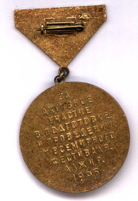 Ёлочек на лицевой стороне моего знака нет. Поэтому показываю реверс.laz писал(а) :Вот знак за подготовку непроведенного фестиваля в Алжире
