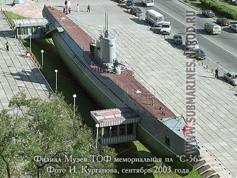 Вскоре принято решение использовать подводную лодку «С-56» в мемориальном комплексе на Корабельной набережной. Для этого субмарину нужно было разобрать, перевезти и снова собрать. Доставка почти 900-тонного корабля на Корабельную набережную потребовала применения дотоле невиданных инженерно-технических решений. Вначале лодку перевели на Дальзавод, у одной из причальных стенок которого она была разрезана на шесть секций. Чтобы доставить их к месту сборки, пришлось построить специальную железнодорожную ветку и спроектировать особые железнодорожные платформы ? обычные для перевозки многотонных конструкций таких габаритов не подходили. После того, как все части «С-56» были установлены и сварены вновь воедино, пришла пора внутренней отделки. К этому времени оригинальный «интерьер» лодки был практически полностью утрачен, поэтому решено было восстановить в первозданном виде только первые три отсека. В остальных разместились обычные музейные витрины.
