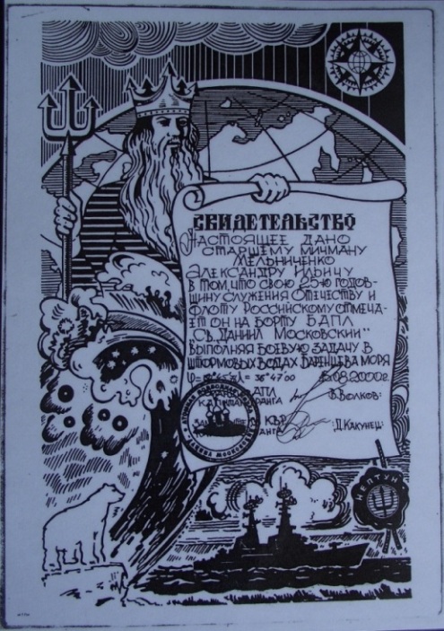 Свидетельство о 25 летней службе-документ-любезно предоставленное Мичманом атомахода "Св.Даниил Московский"- МЕЛЬНИЧЕНКО АЛЕКСАНДРОМ ИЛЬЕЧЁМ