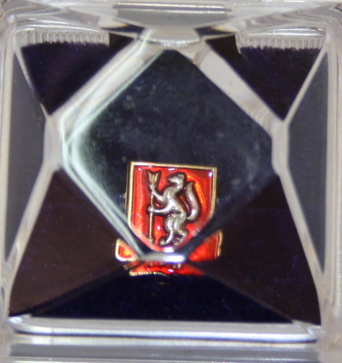Размер 15х 20 мм (без "носика"). Материал – томпак, вариант с покрытием объёмной смолой. Крепление – цанга или булавка. Без клейма. Тираж: - 350 экз.; Выпуск: 2007 г.