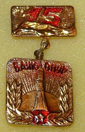 Показаный знак выпускался на Байконуре администрацией в начале 90-х для вручения гражданам, котрым исполнилось 50 лет (по слухам был также знак 60 лет, но не видел), но идея не прижилась.