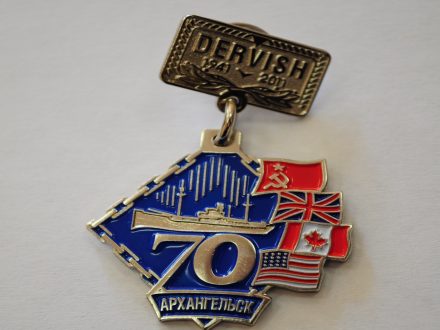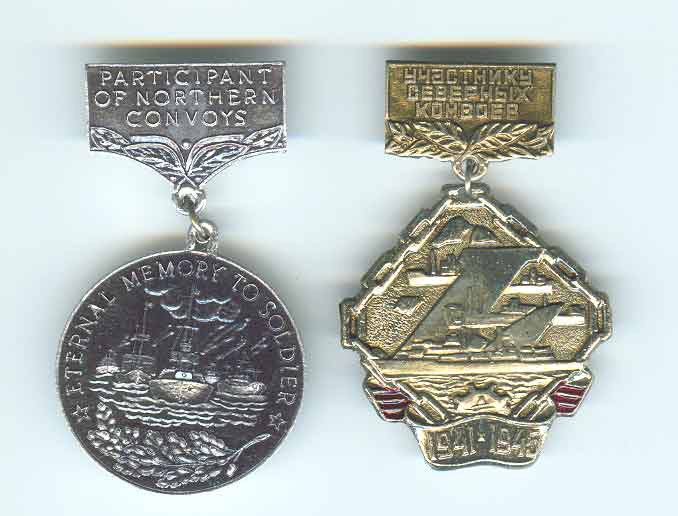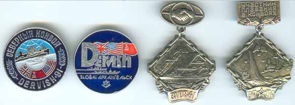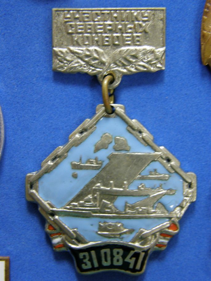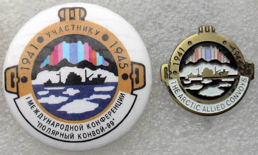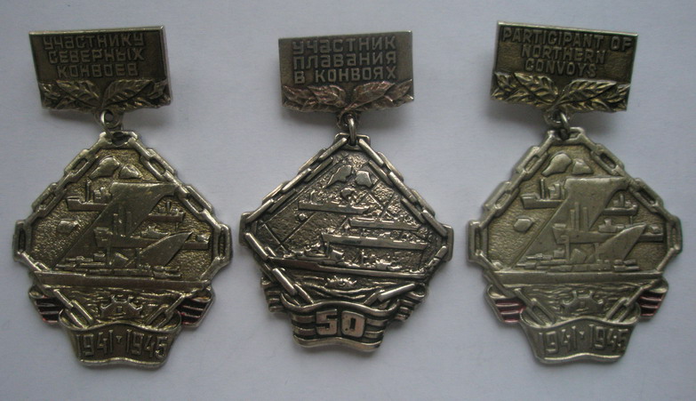 Выше надписи изображение 3 судов конвоя-на которых написано : "The arctic"/"Allied convoys"/"1941-1945".