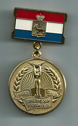 Это знак "За заслуги перед городом Самара". Три степени. Решение о награждении принимается мэром города. К знаку нет никаких льгот и преференций.