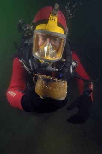 Многие предметы, которые предстоит отнять у моря, не всегда готовы к встрече с поверхностью. Веками они находились в солёной воде и не соприкасались с кислородом. К сожалению,бывают непредвиденные потери и,дабы избежать этого, с рисунков и надписей снимаются слепки, при помощи пропитанной силиконом ткани и тонкой свинцовой пластины.Через 18 часов отпечаток готов.