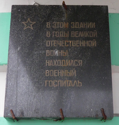 Средняя школа №1. В этом здании во время войны находился военный госпиталь. Номер госпиталя не указан.