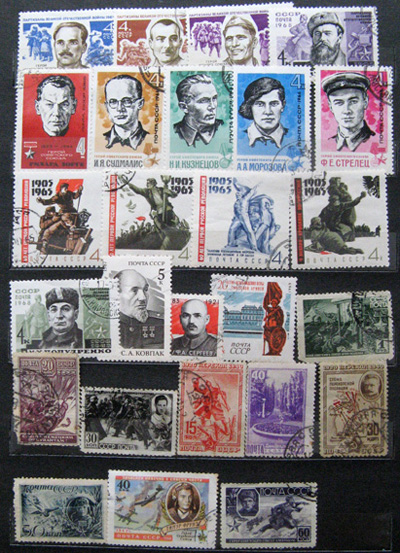 К сожалению по-серьёзному ценить здесь нечего. Все марки копеечные. Есть десяток периода ВОВ, но они тоже простенькие и погоду не сделают.