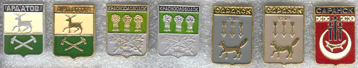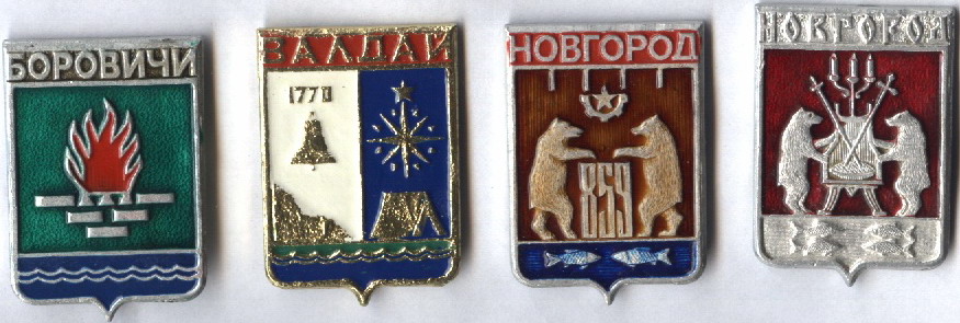 Гербы населённых пунктов на значках.