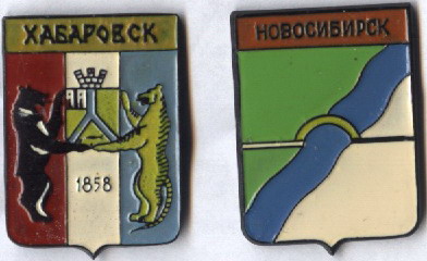 Хабаровск и Новосибирск изготовлены из аллюминия. Черная анодировка. Знаки делались в цеху УПП-2 ВОГ(Москва, улица Вилюйская, дом 6). Клейма нет, потому что это частный заказ геральдистов.
