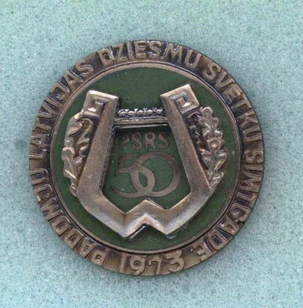 Надпись по периметру : "Праздник песни Советской Латвии "