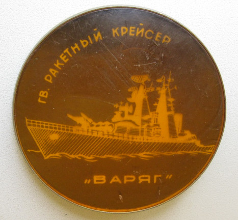 "Адмирал Зозуля" и "Варяг". Первый знак самодельный. На фото выглядит неказисто, в живую смотрится неплохо. Второй сделан из пластмассы, на металической основе, по всей видимости значок сувенирный,так как на реверсе стоит цена 30коп.
