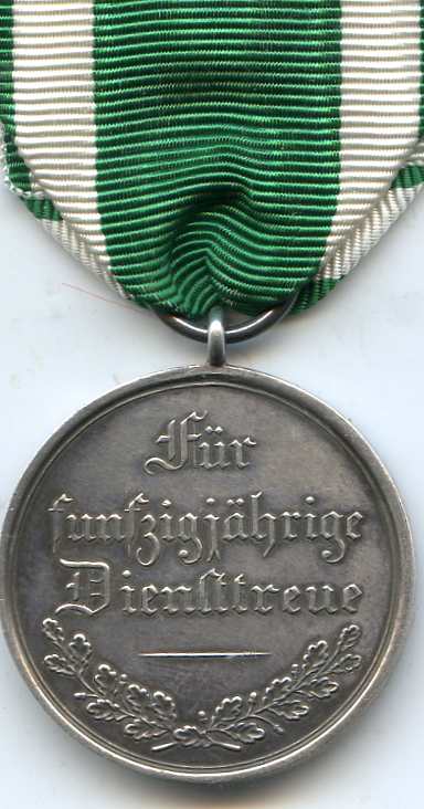 Реверс ;надпись готическим шрифтом «Für fünfzigjährige Diensttreue» (за верную службу 50 лет)