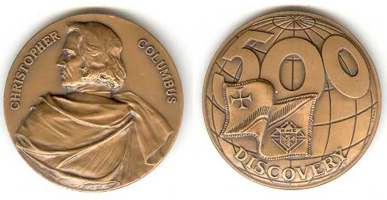 Да! Много наштамповали знаков и медалей в честь Колумба. Вроде бы и Америки не открывал... Пожалуй, только по Берингу несколько меньше медалей.