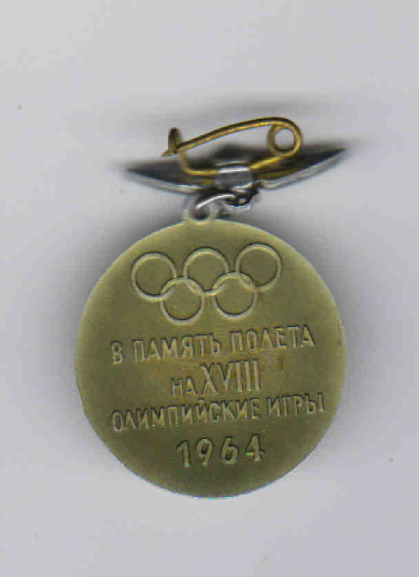 1964 г. Токио. Алюминий, холодная эмаль, булавка, 20,7 мм х 10 мм.