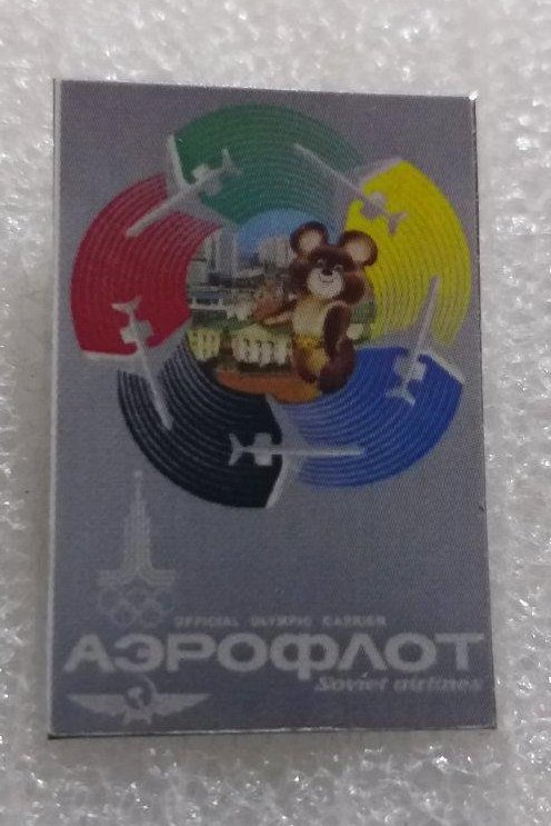 Олимпиада-80. Аэрофлот. Реклама. Латунь, синтетическая смола, булавка, 32 мм х 52 мм.