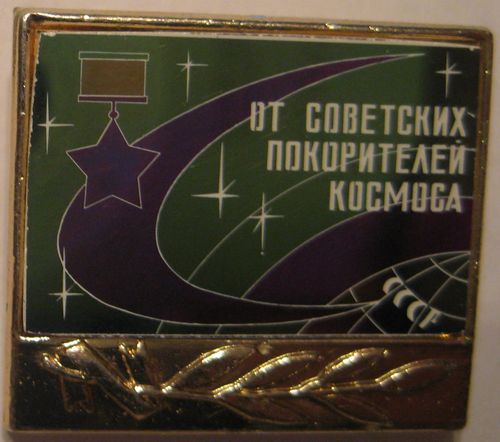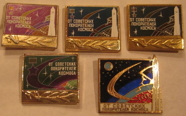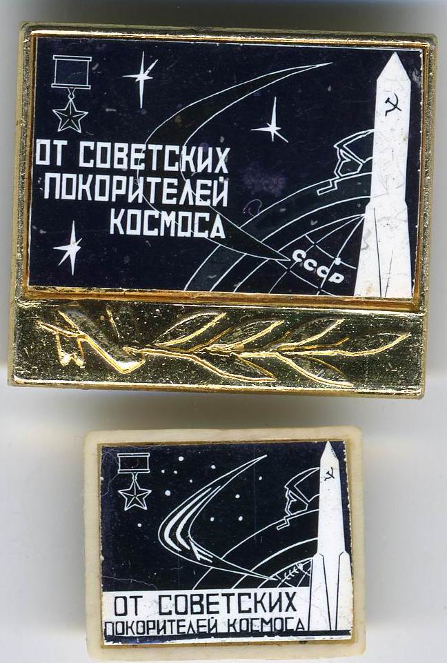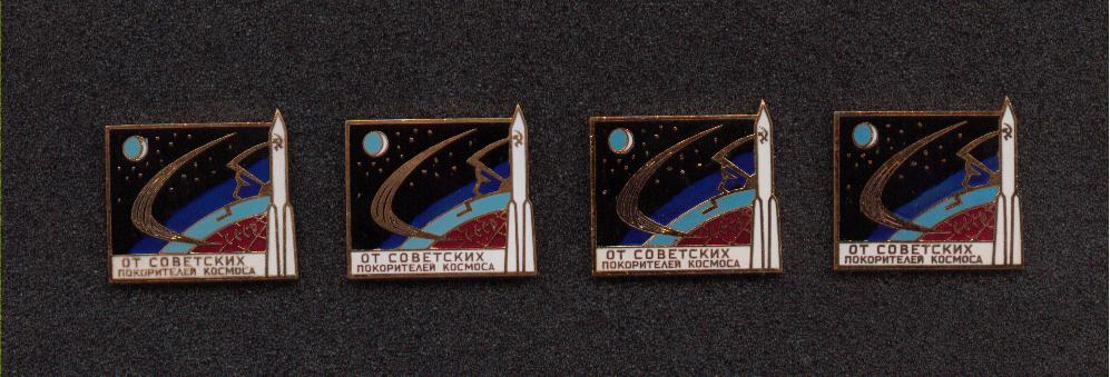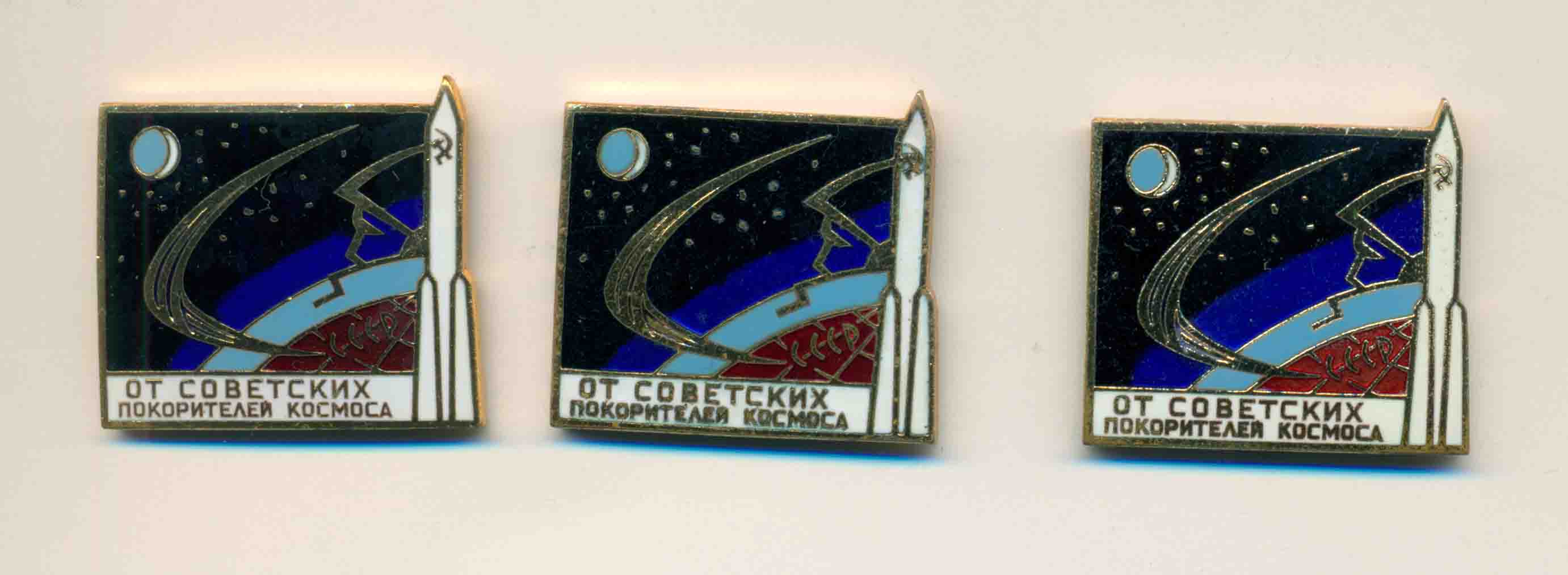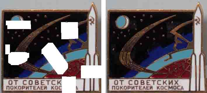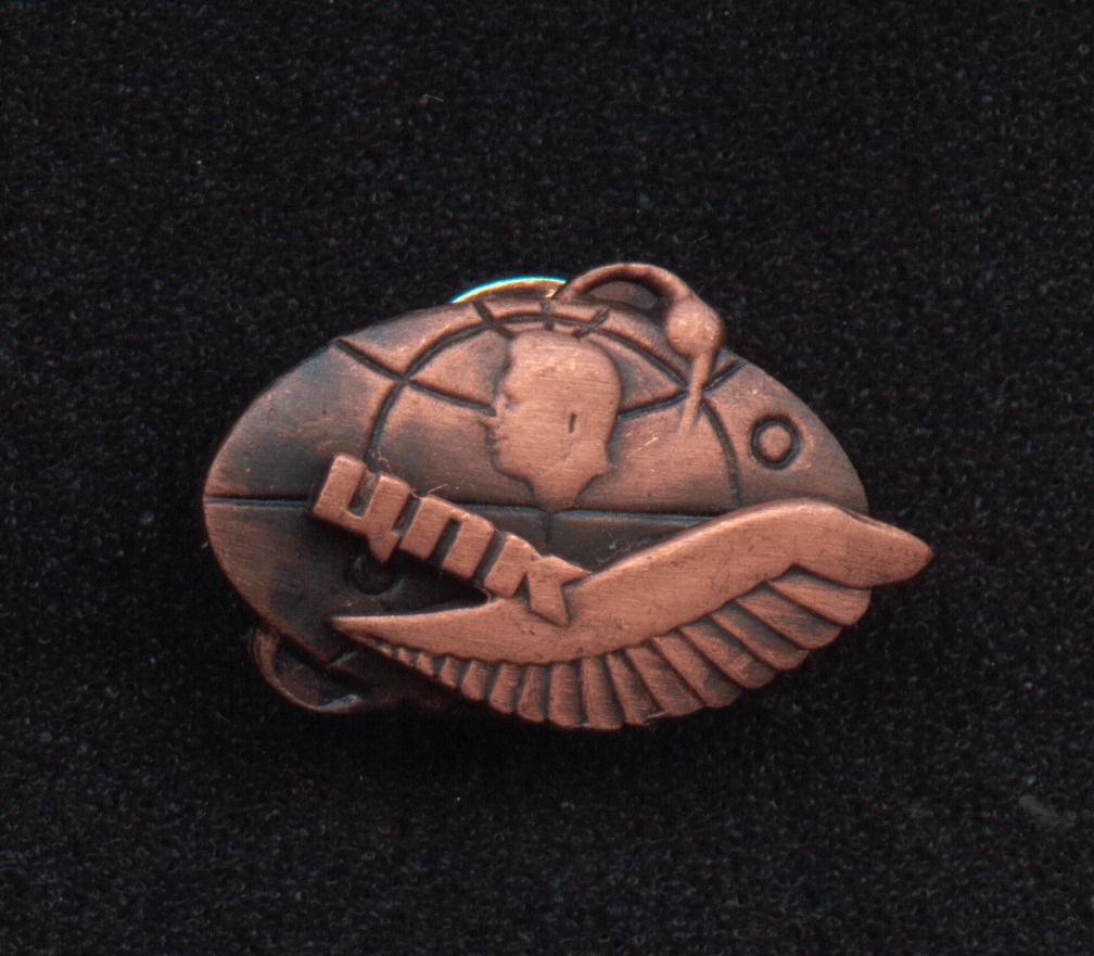 присутствует на этих знаках. Если с них удалить пластину булавки и припаять штифт, получится крепление аналогичное вашему, но уже с "местом