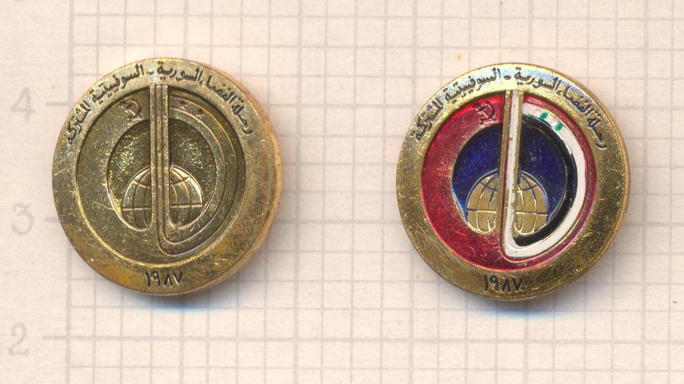 Памятная медаль и знак выпущены на Московском монетном дворе в 1987 г. к совместному сирийско-советскому космическому полету.