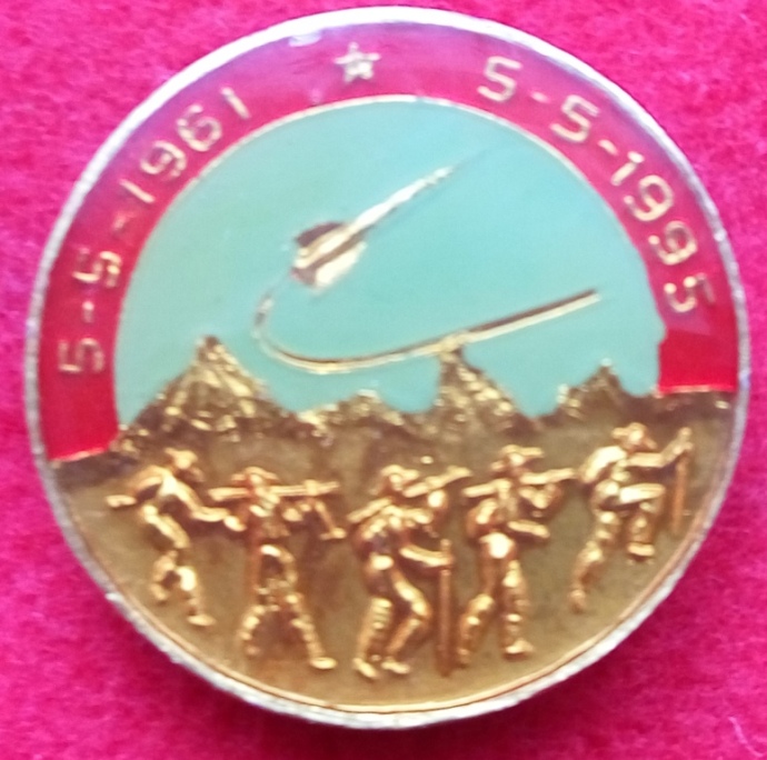 Приобрел значок.5.05.1961-5.05.1995.34 года. Похож на вьетнамский значок.И ракета ПВО. Внизу люди с оружием.